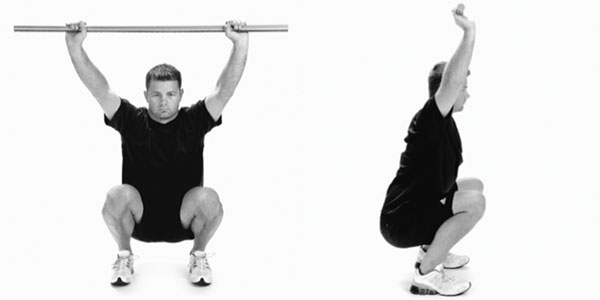 오버 헤드 스쿼트(OHS)는 골반을 바닥으로 낮추고, 흉추 신전, 어깨 어깨 관절과 둔부 근육 및 대퇴사두근을 포함하는 하체의 근력과 수직 자세 및 팔의 유지를 통한 굴곡 및 외전. 골프 문헌에 따르면 전체 OHS를 완료하지 못한 것은 하체 근육 조직의 일반화된 강성과 비대칭성을 나타냅니다. EMG 증거에서 OHS에 관련된 근육으로의 교차는 특정 근육의 강도와 유연성의 증가가 스윙의 운동학에 영향을 미칠 수 있음을 암시할 수 있습니다.