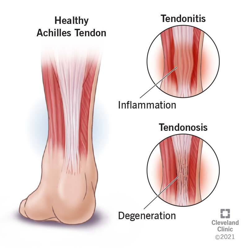 또한, 힘줄 조직에서, 부적절한 산소 전달 및 대사 조절은 힘줄 구조의 약화를 야기하고 결국 아킬레스 건병증을 유발할 수 있음을 보여줍니다. 따라서 Wezenbeek, 등은 신체활동 중 힘줄 혈류량의 증가가 낮을수록 아킬레스 건병증 발병 위험도가 높다고 하였습니다.
