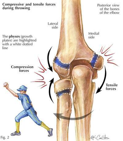 리틀 리그 엘보우는 던지는 동작과 관련해 일반적으로 과사용으로 인한 부상입니다. 이 부상은 투수에게 가장 많이 발생하지만 포수, 내야수, 외야수에게도 발생합니다. 리틀 리그 엘보우는 팔꿈치 안쪽의 있는 성장판에 반복적인 스트레스가 생기기 때문에 발생합니다. 가장 큰 스트레스는 야구공을 던지는 가속 단계에서 발생합니다. 성장중인 뼈는 성장판에 붙어 있는 인대와 근육보다 훨씬 약하기 때문에 쉽게 부상을 당한다. 일단 성장판이 닫힌다면, 뼈 대신 인대와 힘줄을 다칠 가능성이 더 높아집니다.