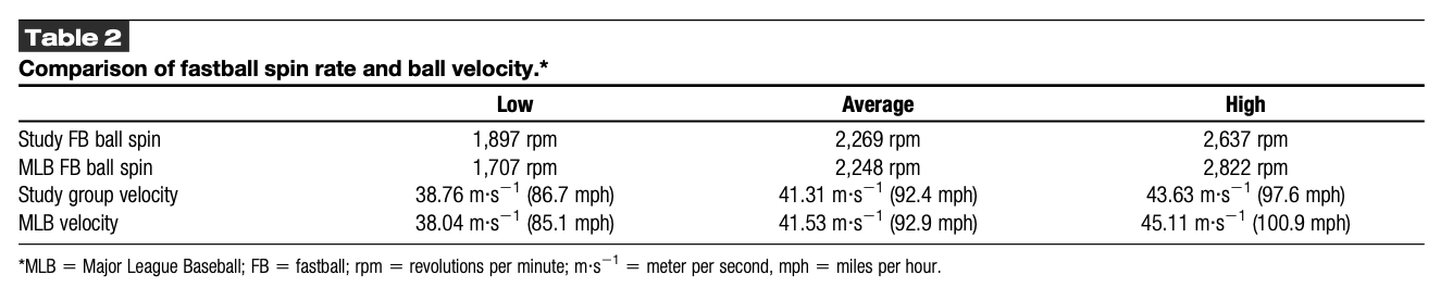 볼 속도 외에도 스핀 속도는 선수, 코치 및 과학자들 사이에서 점점 더 많은 관심을 받고 있습니다. 높은 패스트볼 회전율은 공에 더 많은 백스핀을 생성하여 매그너스 힘을 증가시킵니다.