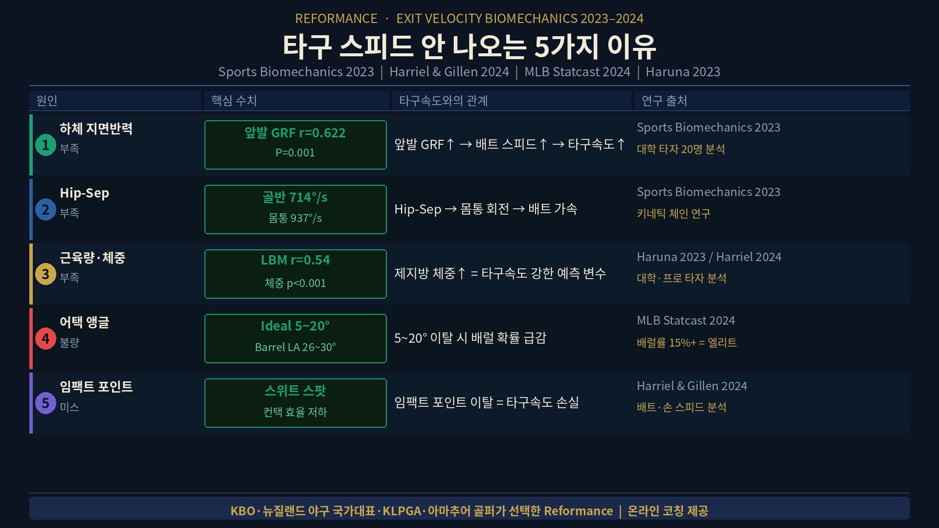 타구 스피드 안 나오는 이유 — 데이터로 밝힌 5가지 원인