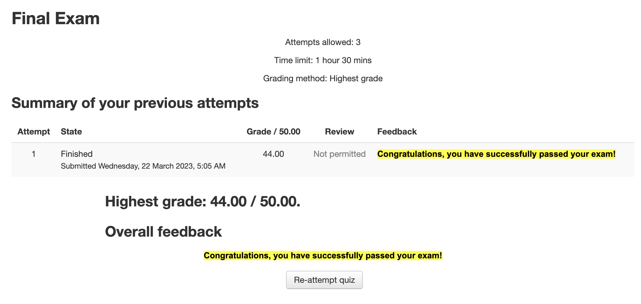 강의 수강을 마치면 바로 시험을 볼 수 있습니다. 시험 기회는 3번 이며 50문제중 80점을 받으면 합격이였던 걸로 기업합니다.