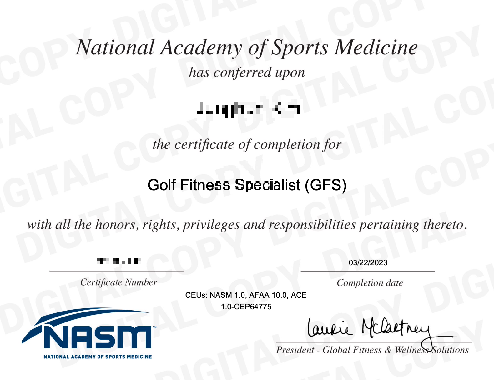안녕하세요 Doctor.K 입니다. 미국에서는 골프에 관한 학회, 세미나, 자격과정 같은 프로그램이 체계적으로 많은 방면 한국에서는 Titleist에서 진행하는 TPI 말고는 크게 할 수 있는 것이 많지 않아 미국에서 진행하는 골프자격 과정을 수강 및 자격 취득을 위해 오늘은 NASM(미국스프츠의학회)에서 국제자격으로 발급해주는 GFS(Golf Fitnesses Specialist) 자격 과정 취득 후기를 써보려 합니다.